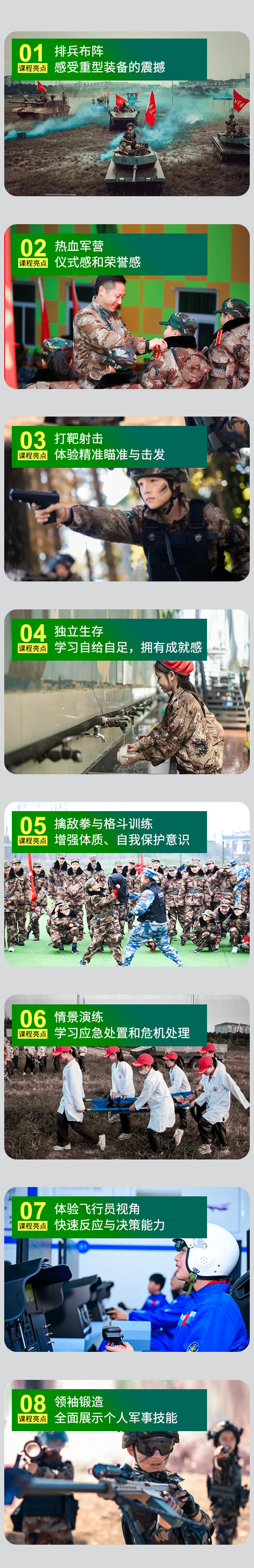 | 学员守则 | 1、学员须严格遵守营地规章、纪律和作息时间,以保证每天有充沛的精力参加军事训练和其他各项训练;