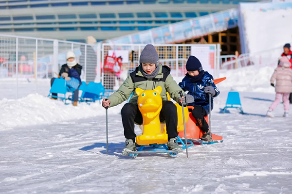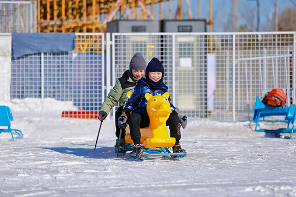 在昆明湖广阔的冰面上,背靠万寿山佛香阁的绝美景色,体验"长虹映雪"的诗意。这里不仅有常规冰车,还有充满趣味的冰上自行车、电动狗拉雪橇等现代化设备,让孩子在皇家园林中尽情释放天性,感受古今交融的独特冰雪体验