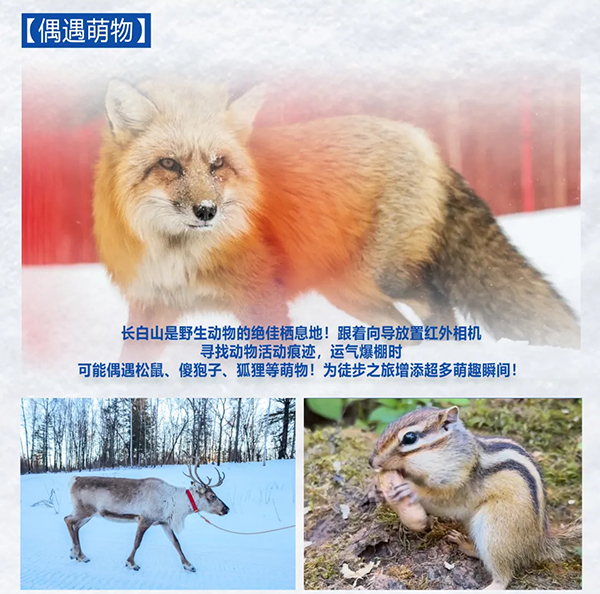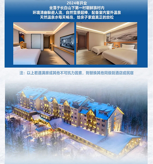 4.景区门票:长白山景区门票+观光车票+天池门票、雪场门票及装备使用费(雪板、雪鞋、雪杖)、驯鹿园门票(含喂食苔藓一盆)、长白山自然博物馆门票、中科院生态系统定位站门票(团队预约,不单独退费)
