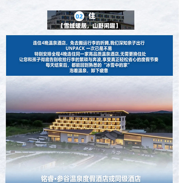 行程:亲子滑雪考核——驯鹿园——云顶天宫——亲子温泉