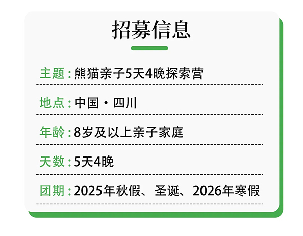 行程:都江堰或卧龙大熊猫基地—保育义工活动—熊猫专家讲座