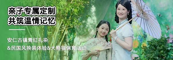 在安仁古镇的“名门”——【青红染】,你们将成为“小小染布匠”,在百年庄园的沉淀中,亲手扎结棉布、浸入传承的靛蓝染缸。亲子共创一件属于自己的扎染艺术品,和萌娃一起体验民间艺术魅力,不仅能收获创造的喜悦,更能亲身感受传统技艺的生命力
