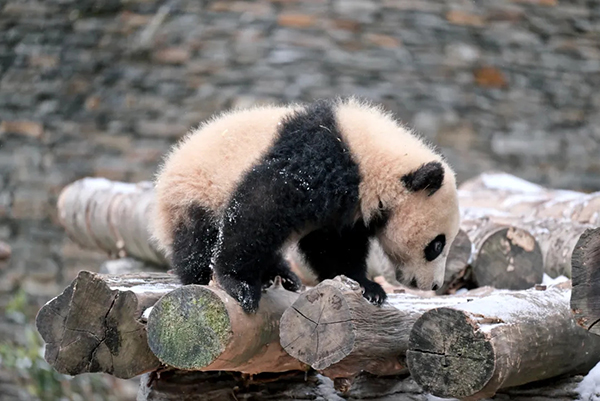 到熊猫幼崽蹒跚学步的温暖画面