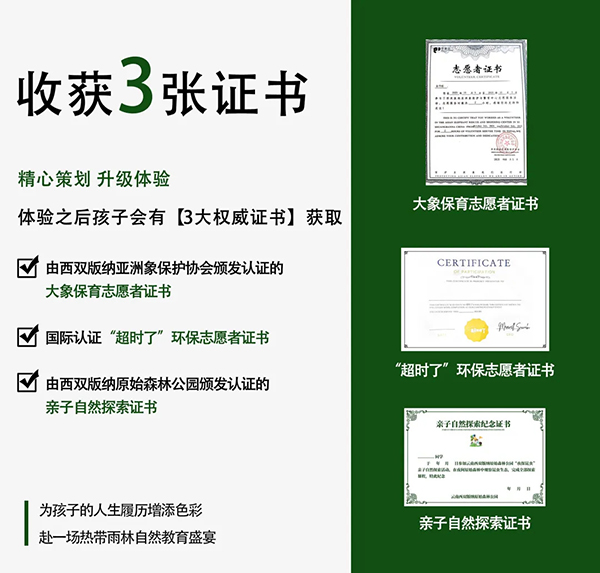 注:根据野象谷保护区当日安排来确认大象保育实践课内容:【大象博物馆+雨林牧象或大象营养师】+大象亲密接触