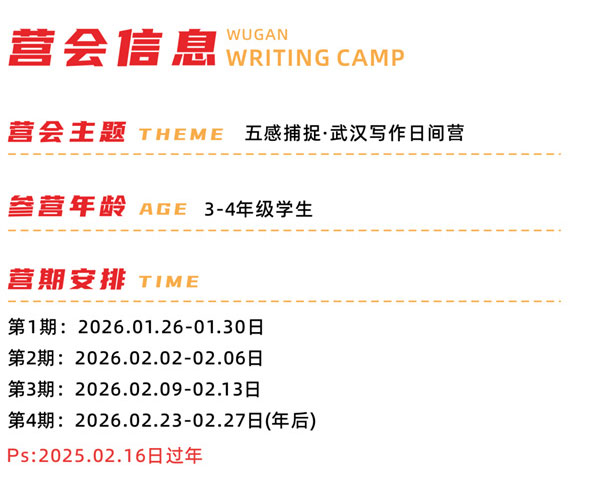 2026湖北武汉五感捕捉·写作日间走读冬令营(5天)