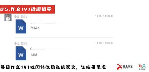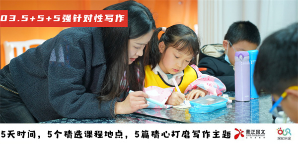 写作老师全部由蒙正国文优秀教师担任,手把手指导孩子完成5篇有针对性,且与活动紧密结合的专题写作文章,掌握写精彩细节描写的关键能力。