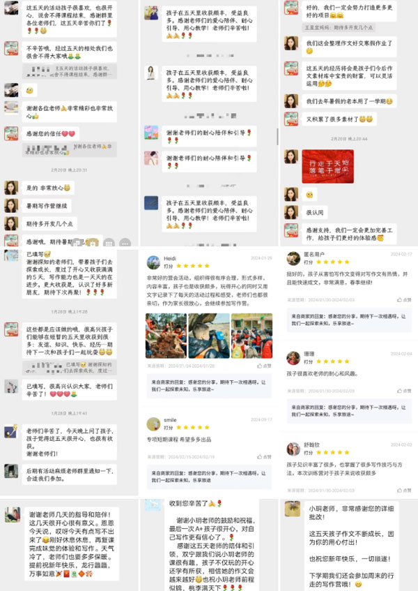 家长的信任与支持,是我们不断创新的源泉;孩子们的成长与快乐,是我们始终如一的追求!至开营以来,我们收获好评无数,一起来看看往期家长的真实反馈吧!