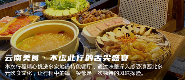 无论是有“红伞伞白杆杆”之称的云南菌菇火锅,峡谷深处的庄园晚餐,香格里拉品尝高原独有的牦牛肉火锅,在传统藏餐厅体验地道藏餐…都能征服你的胃,从雪山到峡谷,从古城到江畔,一起来体验“舌尖上的七彩云南”吧!