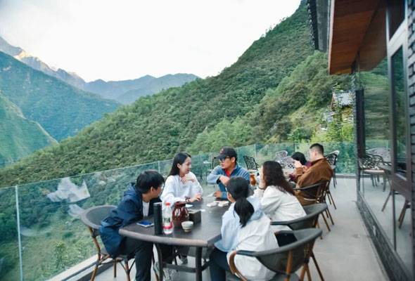 山腰而建的丫叉角庄园,远眺玉龙雪山俯瞰虎跳峡。我们在这里做徒步前的休整,看峡谷绝美风光,三俩好友间品一壶小茶,慢下来感受惬意的亲子时光。
