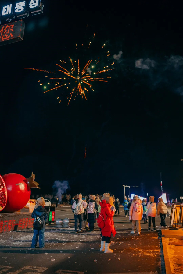 夜幕降临,雪地烟花在夜空绽放,绚烂火光映照着白雪皑皑的大地,孩子在欢声笑语中感受东北年俗的热闹与温情,“团圆、祈福”的传统文化也深深的印记刻在了孩子的心里。