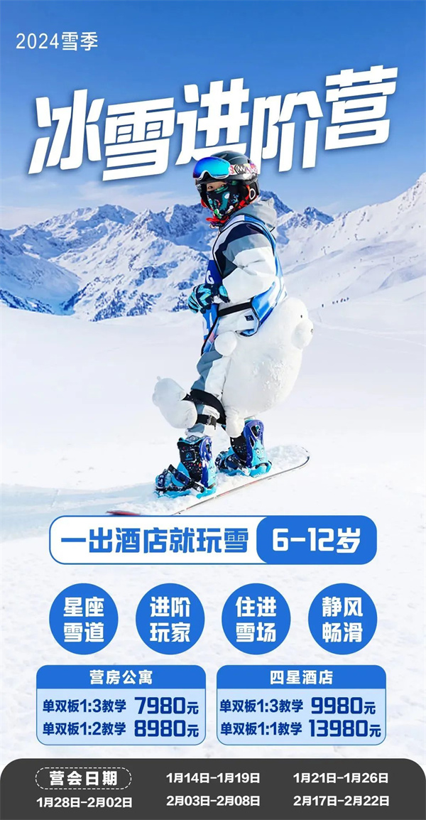 2024河北/张家口崇礼·冰雪挑战滑雪冬令营(6天)师资1:3 营房公寓