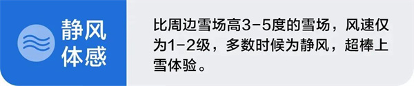 室外温度比其他周边雪场高3-5度,风力较小,风速仅为1-2级,多数时候为静风,滑雪体感极佳。得天独厚的地理位置,给孩子们提供了舒适的滑雪环境。