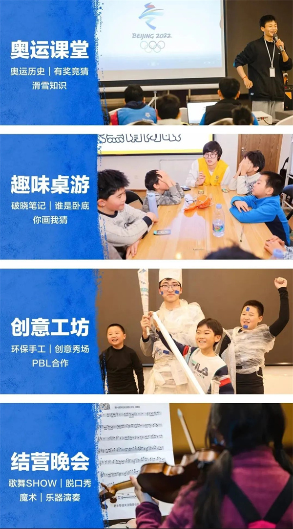 既要滑得开心,也要轻松Social。在日常训练之外,我们开设了奥运课堂、趣味桌游、创意工坊、欢乐晚会,每个营员都能在这里,收获志同道合的好朋友。