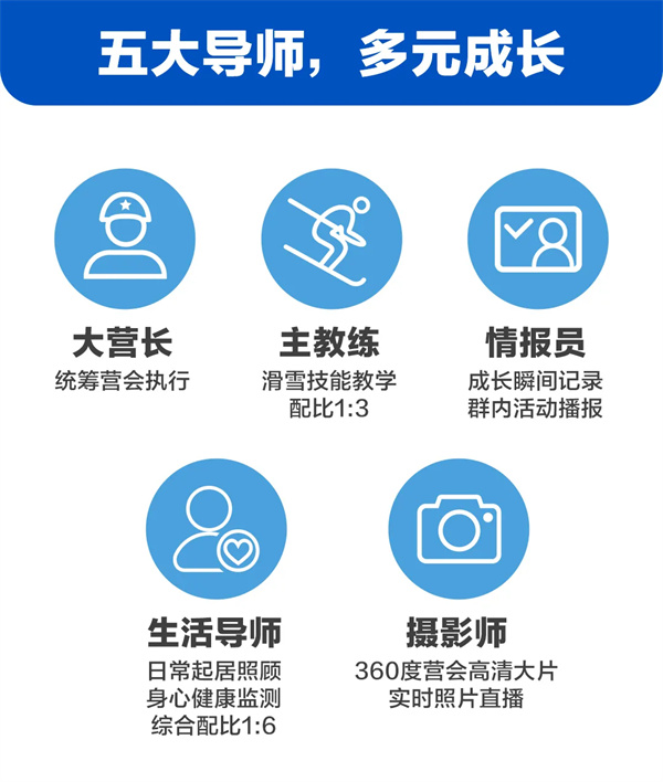 拒绝1:5教学,全场单板/双板1:3教学,场地、师资、营会、成长...360度养成计划,给足爸妈和孩子超多安全感。